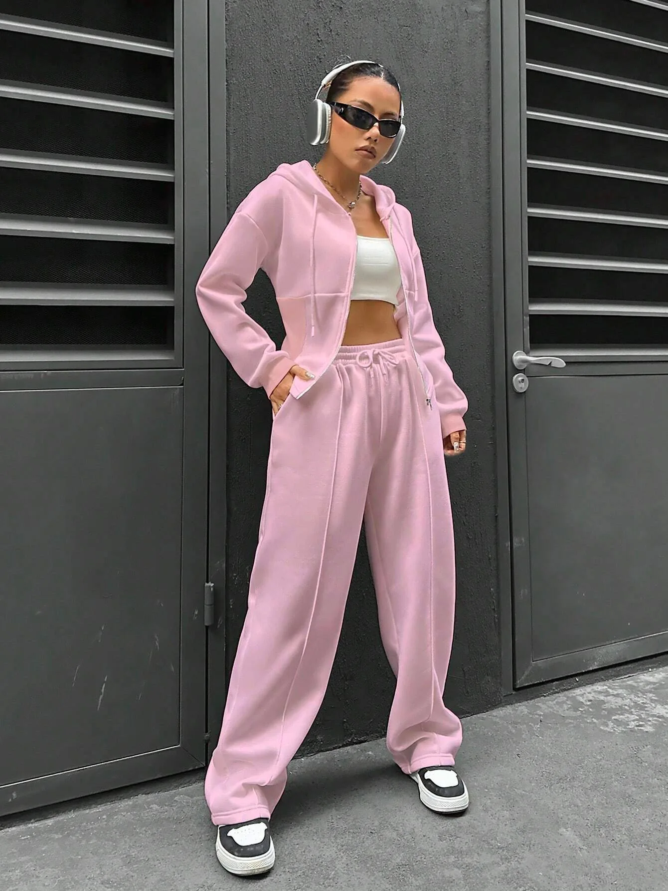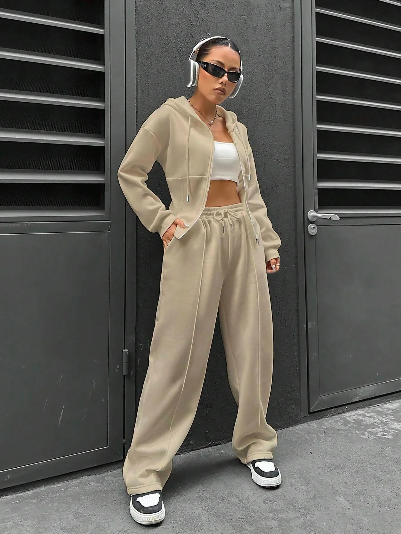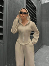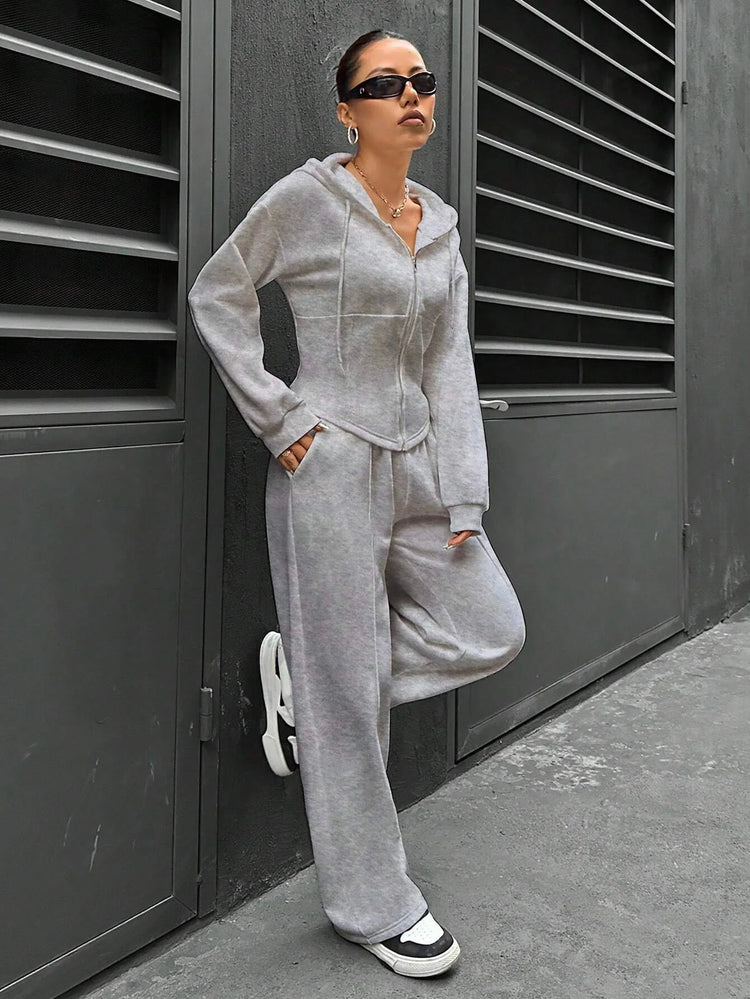 Sweatshirt Two-piece Set Women's Casual Sports Suit Spring Autumn Zip-up Slim Hoodies Short Coat Straight Trousers 2-piece Sets