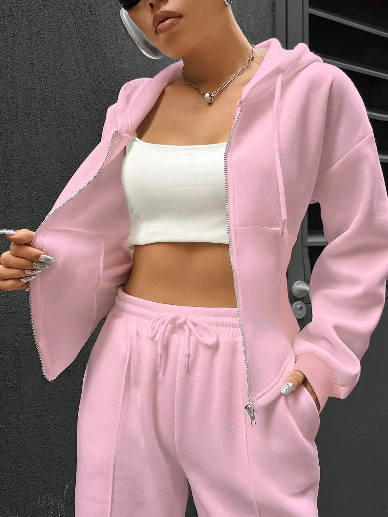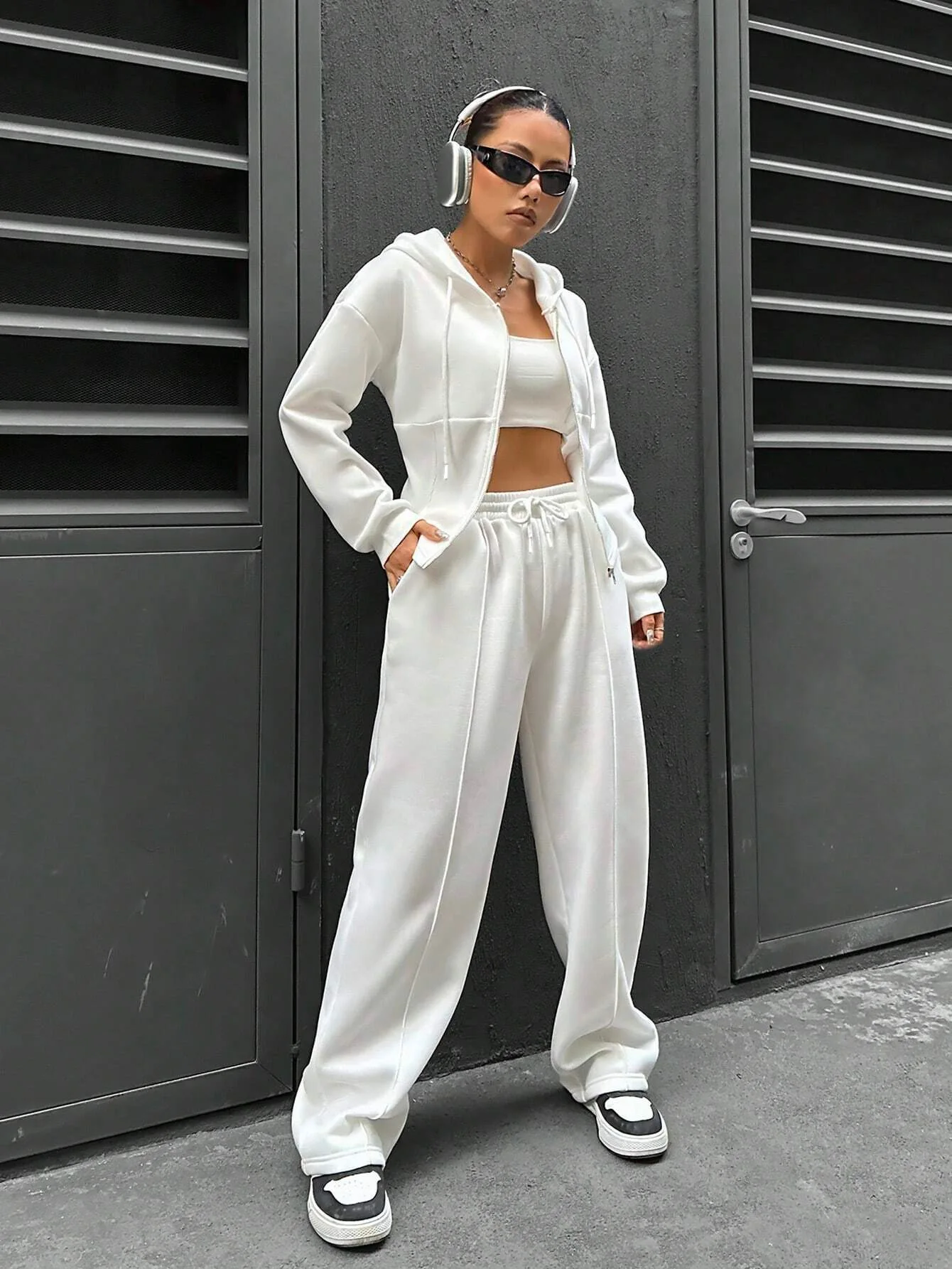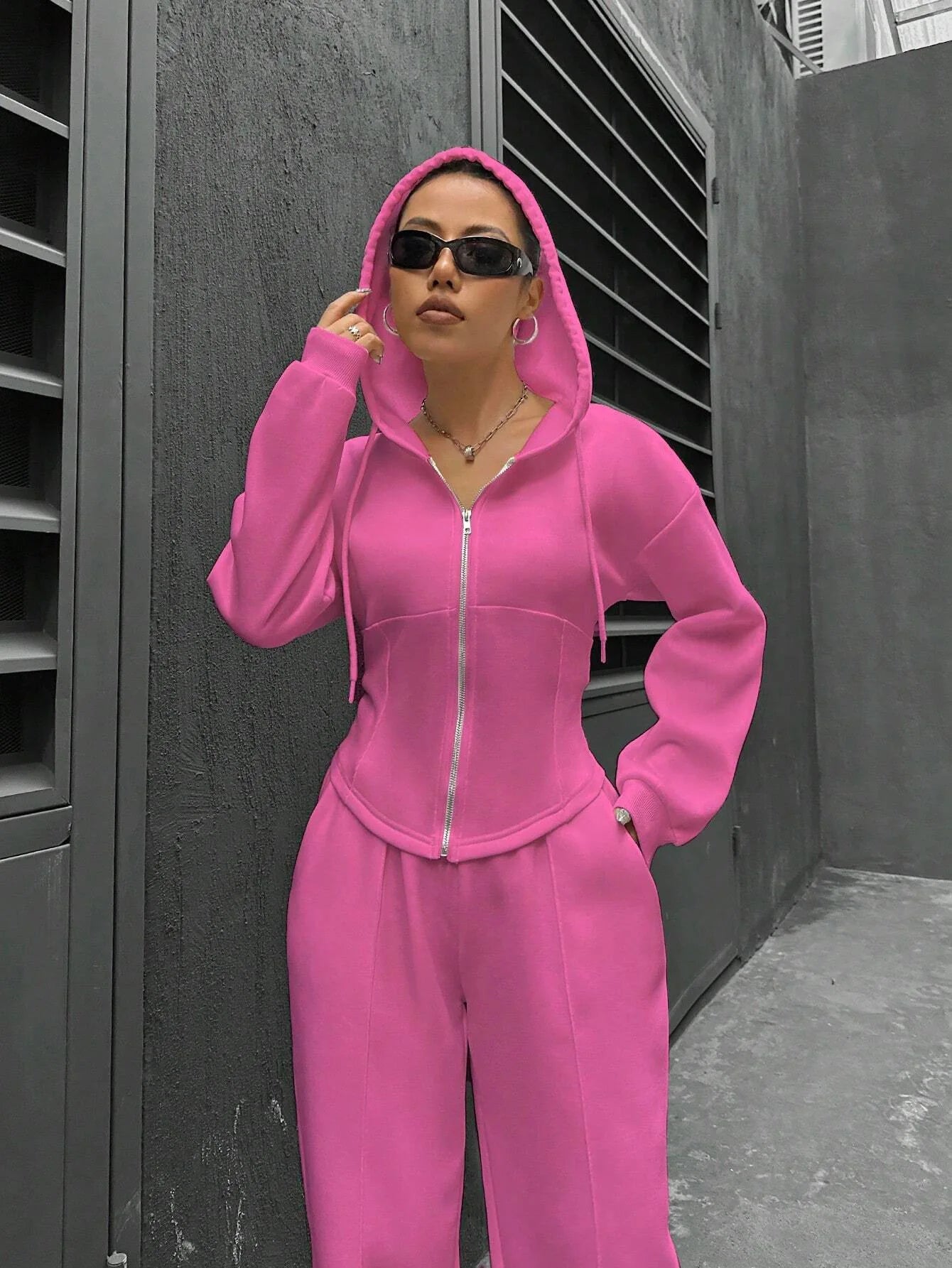 Sweatshirt Two-piece Set Women's Casual Sports Suit Spring Autumn Zip-up Slim Hoodies Short Coat Straight Trousers 2-piece Sets